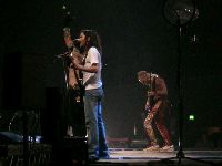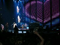 Gibt viele Songs vom neuen Album, besonders zum Anfang hin, später wirds dann bunter, einige ältere Stücke folgen - Stimmung is durchweg gut, großartige Mitsingchöre aus 12.000 Kehlen begleiten die Hits, beeindruckend! Der Sound is auch fantastisch, und das für so ne große Halle - Respekt! Kiedis gratuliert noch dem Soundmann, der soll einfach nur "great" sein und wird 44. Alles gute!