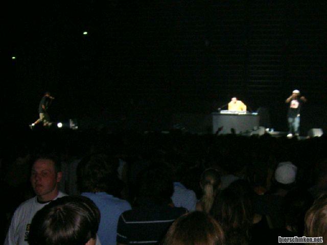 Weil wir so alte Haudegen sind komm ich trotz Sitzplatzkarte in den Innenraum, ha wär doch gelacht, und da spielt die Vor-"Band": Dizzee Rascal oder so, und es is Hip Hop! Gehts noch schlimmer? ein Plattendreher und zwei Räpper wuseln da auf der Bühne rum. Absolut nich unser Ding, auch wenn ich das eingesampelte Strokes-Riff ganz geil find. Ansonsten is aber zumindest vorne gut Stimmung.