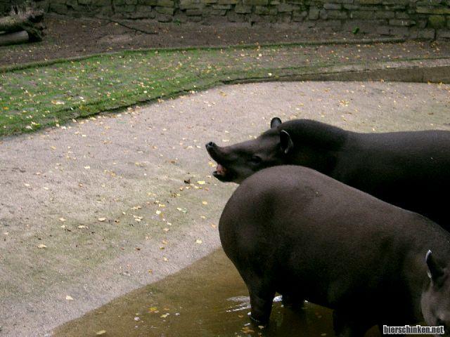 Am Tapirgehege is ganz viel Spaß angesagt! Ein Tapir pisst ins Wasser, ein anderes schnuppert erst genüsslich daran und bleckt angewidert die Zähne. Super! Nur leider kein Foto gemacht, also bitten wir höflich darum, das zu wiederholen. Und tatsächlich. Ein Tapir pisst ins Wasser, ein anderes schnuppert erst genüsslich daran und bleckt angewidert die Zähne. Super!