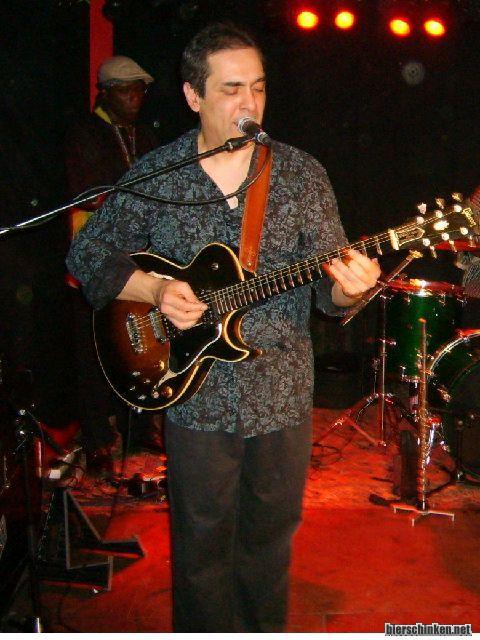 Eher im Hintergrund hält sich der Keyboardspieler, auch wenn der des Öfteren den Offbeat vorantreibt - also kein Foto von dem. Dafür halt vom Gitarristen, der seine Gitarre zwar zu hoch hält, aber mit seinem enthusiastischem Gitarrenspiel voll überzeugen kann, herrlich!