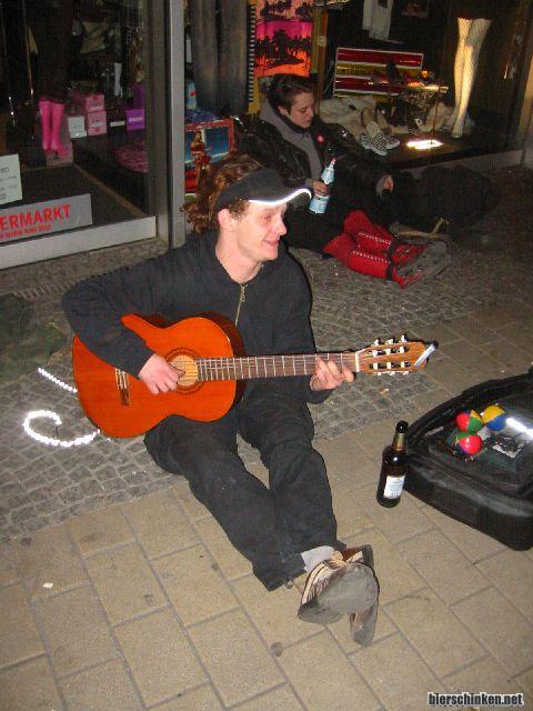 Stargast der Punker is Lutze aus Berlin, der wohl gestern in Wermelskirchen gespielt hat und sich hier seinen Pennplatz erschnorrt. Und der macht Liedermacher-Gedöns was stark an Götz Widmann auf Berliner Akzent erinnert, nich schlecht! Kriegt n Bier von mir