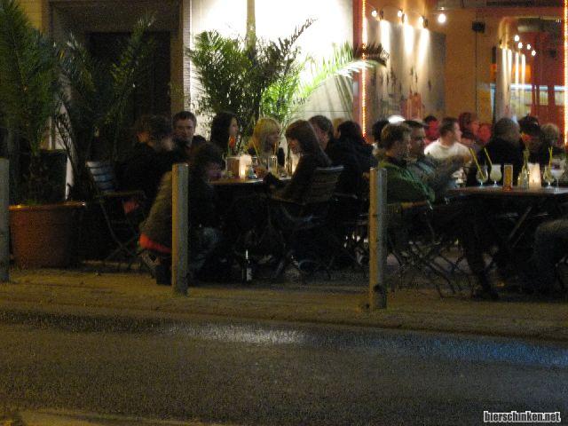 Ja, für uns gehts erstmal weiter, Brückstraßenkiosk und so. André is in irgendner Cocktailbar, also latschen wir dahin, da sitzen dann auch lauter bekannte Gesichter, wir werden aber verjagt weil Bierflaschen nicht erlaubt. Schade. Ulf kommentiert das mit "Das macht ihr nur weil ich weiß bin", der farbige Kellner schaut etwas säuerlich