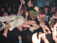 Stagediving gibbet natürlich auch! Ruben, der kleine Alkoholiker, schmeißt sich erstmal schön auf die Meute.