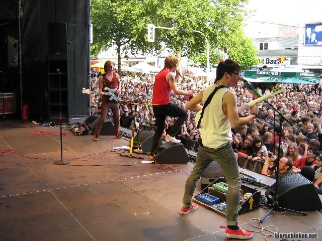 So, nun aber zurück zur Einslive-Bühne! Disco Ensemble wurden mir noch gestern von Elco wärmstens ans Herz gelegt, darf ich mir natürlich auch nicht entgehen lassen, die letzte Platte kann nämlich so einiges - auch wenns irgendwie Emo ist