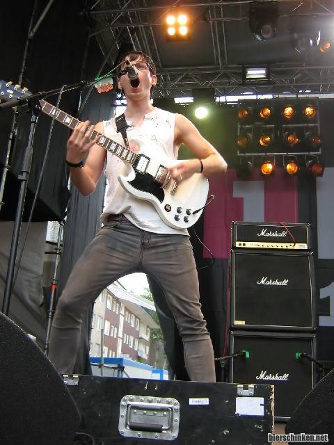 Der Gitarrist mit seiner komischen Frisur und Brille passt mir auch nich so ganz, warum muss man bloß so beschissen aussehen wenn man so gute Musik macht?