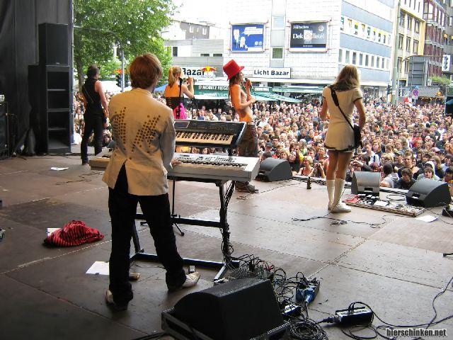 Ordentlich Fans hat die Band wohl auch schon, spielen auch nicht zum ersten Mal hier auf Bochum Total. Und die Merchandising-Artikel wurden ihnen anscheinend aus der Hand gerissen, zumindest lief im Anschluss ungefähr jeder zweite mit nem Bandshirt rum...