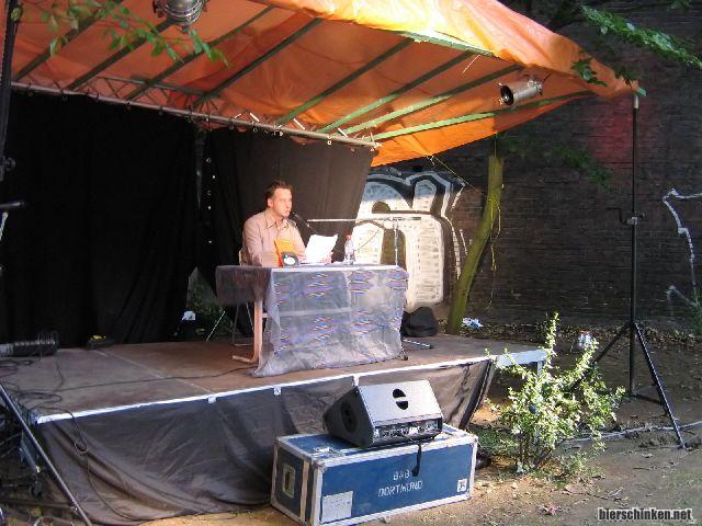 Etwas rumschlendern...neu bei Bochum Total ist die fünfte Bühne, auf der Lesungen und Kleinkunstdarbietungen stattfinden. Als ich vorbeikomm, liest da grad Matrell Beigang aus dem Leben eines kleinen Nachwuchsmusikers und einer Daily-Soap-Sängerin...Ziemlich gute Rhetorik hat der Mann, ich mag Nebensätze!