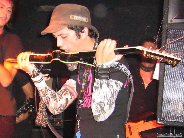 Und geile Show, das Publikum traut sich auch erstmals etwas weiter vor die Bühne. Die Lieder von Myspace kennen anscheinend gar ein paar Leute (ich nicht), der Rest wird auch ganz gut aufgenommen. Highlight: Der Gitarrist spielt mit den Zähnen. Oder Zunge. Oder was der sonst so im Hals hat