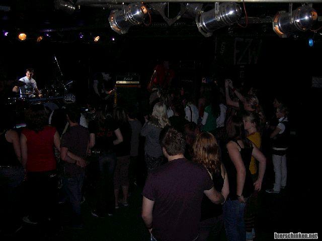 Gegen 21 Uhr legt die Vorband los. Omas Zwerge aus Essen. Netter deutscher Pott-Punkrock. Und der Leadsänger mit "Kind im Magen?"-Shirt. Und so klingen die auch. Wie ne Mischung aus Shit lives on, Kind im Magen? und rein soundmäßig kann man n bisschen WSK raushören, wenn man will. Muss man aber nicht.
