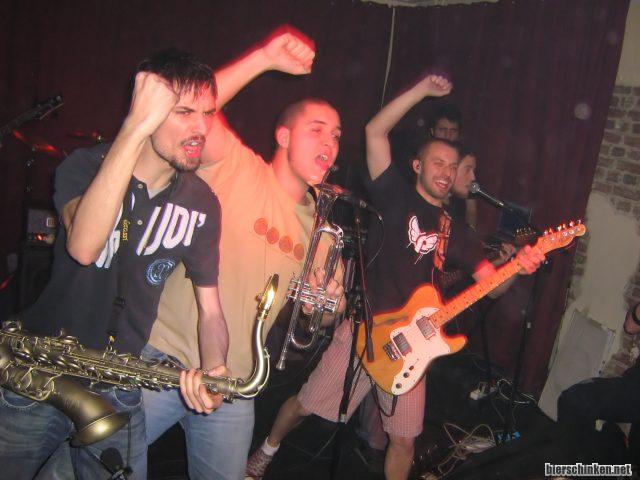 Und Platz für die Hauptband, die sympathischen Italiener von Talco, die mit zu dem besten gehören, was mir dieses Jahr so an Skapunk untergekommen is. Stimmungsmusik mit politischer Message und fetten Bläsersätzen, da wird die Faust auch mal gen Himmel gereckt.