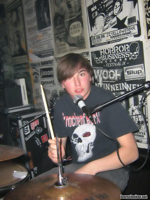 Auch unser heißgeliebter Phil ist mit von der Partie und weiß sein vom Schnaps gefeuchtetes Stimmchen intelligent in die Refrainparts einzubauen. Auch das passende T-Shirt wird heute aufgetragen. Hier stimmen im Gegensatz zu manch anderen Bands der Stunde noch die Bühnenoutfits.