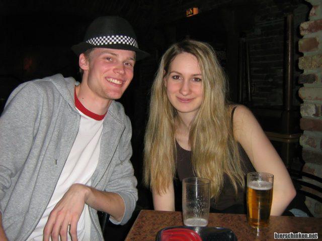 Stephan und Jenny, wie erwähnt extra aus Braunschweig angereist, weil das gestrige No-Relax-Konzert in Berlin ausgefallen ist. Warum wohl? Weil zu wenig Publikum erwartet? Hm. Wir setzen uns an einen Tisch, der so wunderbar präpariert ist, dass man die Tischplatte drehen kann, wodurch Holdy und ich ohne Probleme an das Bier der beiden gelangen können. Geil!