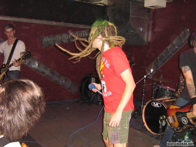 Eigentlich versuch ich ja die ganze Zeit, den Sänger mal mitten im Sprung zu erwischen, will mir aber nicht gelingen. Menno. Da is meine Kamera dann wohl doch zu langsam zu. Aber zumindest wehende Dreads will ich euch nicht vorenthalten: Da.