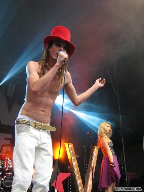 Ziemlich abgedrehter Glamrock mit sehr bunter Bühnenshow und mindestens ebenso bunten Songs, die teils experimentell und teils geradlinig durch die Gehörgänge marschieren. Ihr Publikum haben sie voll im Griff, die erste wirklich gute Band am heutigen Tage!