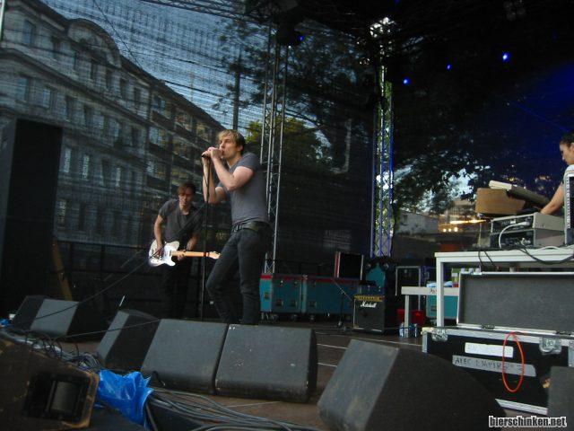 Unser Ziel heute Abend: Die Ringbühne, auf der Alec Empire seine Soloperformance zum besten gibt. Kennt ihr nicht? Ehemals Frontmann von Atari Teenage Riot, und das allein sollte schon ein Grund sein, alles andere und insbesondere auch Die Happy auf der anderen Bühne links liegen zu lassen.
