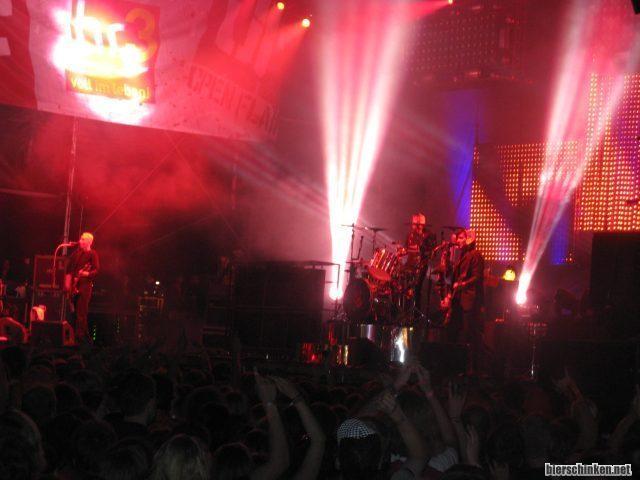 Gut besoffen gehts dann ab zum "Überraschungs"-Headliner! Mit "wir sind Blackmail aus Berlin" begrüßen uns Die Ärzte, welch Überraschung. Unser Tipp war ja eigentlich, dass Depeche Mode als die Foo Fighters verkleidet unter dem Namen der Toten Hosen Die Ärzte covern. Aber das nur nebenbei