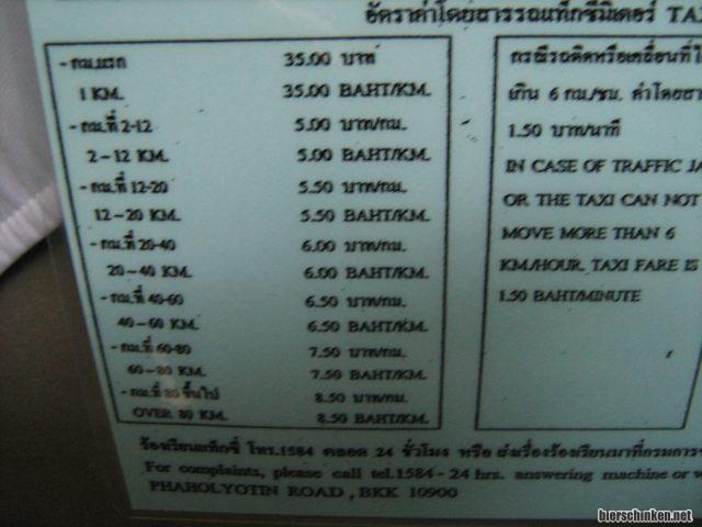 Für die nächste kurze Strecke nehmen wir ein Taxi. Interessant ist, dass die Preise auf dem Rücksitz angeschrieben sind - scheinbar eine gesetzliche Regelung, damit Touristen nicht so abgezockt werden