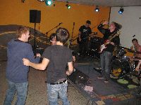 Aber abgesehen davon macht die Band ordentlich Druck. Schön knallige Songs pusten uns durch die Ohren, schnelle Riffs und ein gut aufgelegter Schlagzeuger lassen dann doch ein paar Köpfe mitwippen.