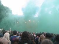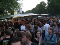Schließlich gibts hier auch Bierstände. 2 Euro für ein 0.3er, könnte schlimmer sein. Dafür sind die Menschenmassen unerträglich. Wir verlagern unseren Standort auf den Bierwagen direkt vor dem Eingang, da isses noch recht leer und gute Musik gibts da auch