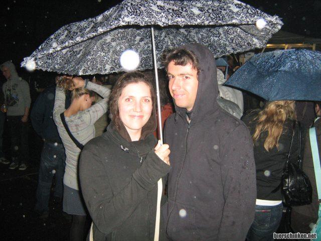 Oder unterm Regenschirm von Kathrin und Nico. Verdammtes Wetter! Klamotten nass und Kehle trocken, da hilft nur eins - wir haben ja noch Bier im Auto. Oi!