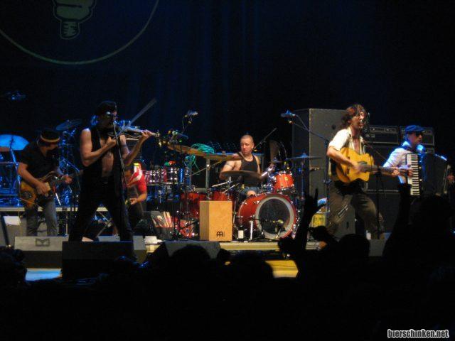 Viel Zeit haben wir aber nicht, schließlich wartet schon das nächste Highlight: Gogol Bordello! Schon viel zu lange nicht live gesehen, wobei die Band doch gerade für ihre Live-Auftritte bekannt ist. Und dafür, dass Sänger Eugene Hütz mit Madonna ganz dicke ist. Aber das gehört hier nicht her.
