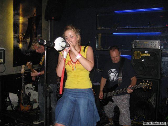 Die Frontfrau kann zwischendurch auch noch auf Keyboard und Megaphon zurückgreifen, ansonsten muss sie sich voll auf den Gesang konzentrieren. Und der kann sich hören lassen.