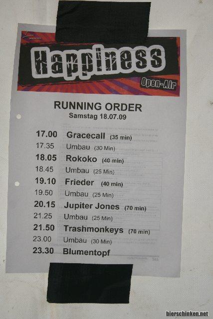 Happiness Open Air, Tag 2: Rokoko, Frieder, Jupiter Jones, Trashmonkeys, Blumentopf - 18.07.2009, Schwann - Bilder und Bericht von Synthex APM