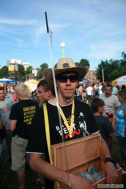 Um die Wartezeit an den Kassen zu verkürzen, wurden Leute eingesetzt, die noch in der Menge rumliefen, um die Biermarken zu verkaufen. Eine clevere Lösung...später wurde sogar eine Bar-Kasse an der Bierausgabe eingesetzt, denn der Andrang wurde immer größer.