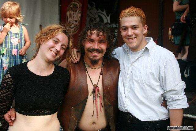 Das erste Groupiebild des Abends...Kati und Rani mit Dominicus von Metusa
