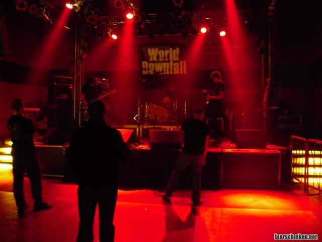 Als Opener schmetterten die Jungs von WORLD DOWNFALL direkt los und begannen das Set wie schon vor ein paar Wochen in Köln mit dem Intro "To the deaf"... Ich glaube die ahnten schon wie es meinen Öhrchen nach dem Abend gehen sollte.