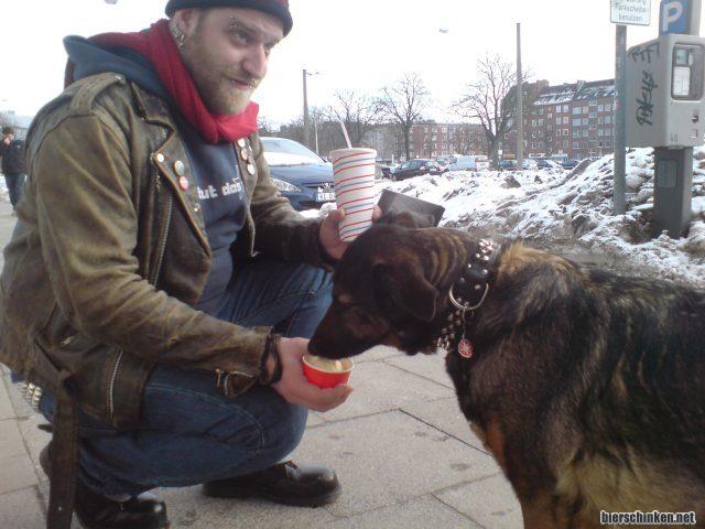 Das erste Milchshake der Saison und das erste Eis. Endlich taut die weiße Scheiße mal ein bisschen und wir Helden kippen das kalte Zeug direkt wieder in uns rein, höhö. Auch Frau Hund bekommt natürlich ihre Portion - so läuft das!