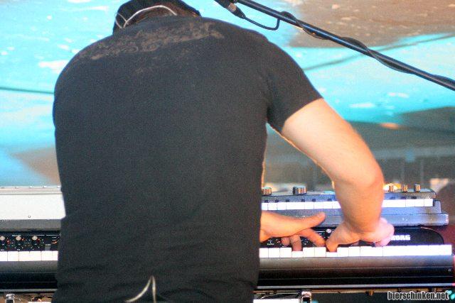 Ich lauf ma wieder um die Bühne rum und spick mal, was David für Tasten drückt.