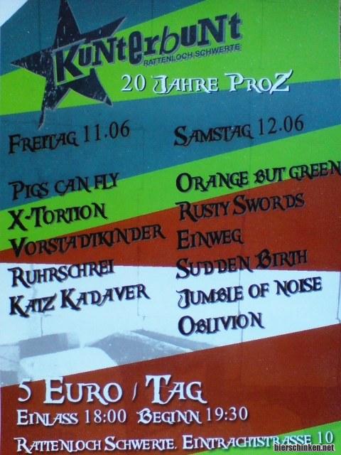 Rusty Swords, Orange But Green, Jumble Of Noise, Sudden Birth, Oblivion, Einweg am 12.06.2010 in Schwerte, Rattenloch - Bericht von doX
