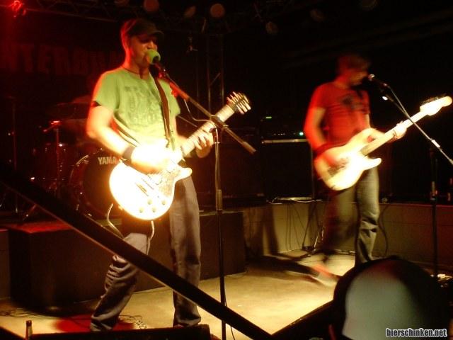 Apropos Relikte, jetzt sind ORANGE BUT GREEN an der Reihe. Zweifelsfrei die Combo mit der größten Bühnenerfahrung des Abends. Seit wasweissichwievielen Jahren rocken sich die drei Nutten durch jede sich bietende Schlafgelegenheit, lassen keine Besetzungscouch, Badewanne oder Celluloidstrippe aus, um sich und ihre musikalischen Ergüsse an den Mann oder lieber noch, die Frau zu bringen.