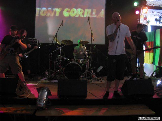 Irgendwann erklingen schließlich die ersten Töne - also ab vor die Bühne. Tony Gorilla gehören mit Sicherheit zu den besseren Kapellen hier aus der Gegend, sowohl vom spielerischen Können her als auch vom Stil her. Midtempo-Hardcore-Punkrock zwischen Danzig, Black Flag und, wie Alexej vorschlägt, Ignite. Äh, ja.