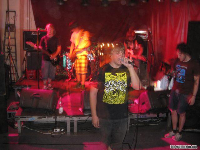 Irgendwann schauen wir dann mal, was vorne so geht. WILLY FOG aus Bergkamen machen heute den Opener auf der provisorischen Bühne. Ne Band, die ich bis vor nem halben Jahr überhaupt nicht auf dem Schirm hatte, seitdem aber ständig in irgendwelchen Line-Ups auftaucht. Macht sich, wie man so schön sagt.