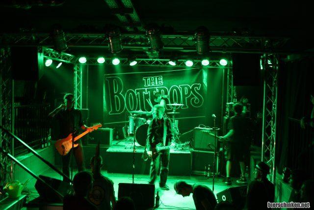 So, nochn Bierchen. Mehr oder weniger zufällig bekommen wir mit, dass es drinnen schon wieder weiter geht - The Bottrops sind an der Reihe. Die Berliner Haudegen sind ja nicht selten auf Tour, machen aber immer wieder Spaß. So auch heute, auch wenn sich die Reihen im Publikum etwas gelichtet haben. Ist die ominöse Gießkanne schuld?