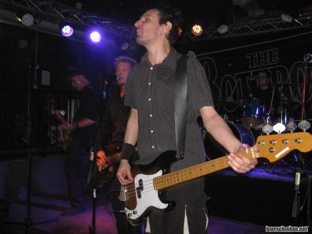 Achja, und auch ein paar Szenen zwischen den Songs kennt man noch von der Vorgängerband. So muss dem Publikum mühsam beigebracht werden, auf "Seid ihr alle gut drauf?" nicht mit "Yeah" zu antworten, sondern beispielsweise mit Mittelfingern und "Fick dich du Arschloch"-Rufen. Klappt. Benno meint, er hätte den Hass richtig gespürt - den von Bassist Slash.