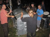 Das soll nun auch an Feierfotos für heute reichen, lasst euch bloß gesagt sein: Auf dem Sziget gibts genug Möglichkeiten, nach den Konzerten ausgiebig zu feiern! Selbst jetzt noch, wo das Mokka Cuka und die beliebte HVG-Reifenbar weg sind...Musik ist überall, auch an Mülltonnen.