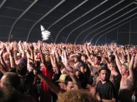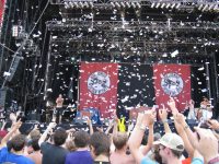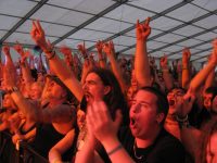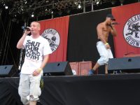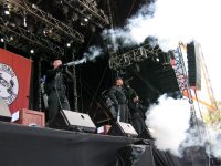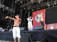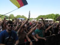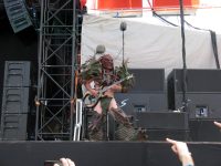 Vor der Bühne ist gut was los und ich hab wirklich den Eindruck, als ob es einem Großteil der Besucher ähnlich geht wie uns: Zufällig vorbei gekommen und wegen der guten Stimmung geblieben, auch wenn man die Band nicht kennt. Yeah, endlich mal ein Highlight! Bisher waren die vielen Bands des Tages ja eher enttäuschend (abgesehen von GWAR natürlich)