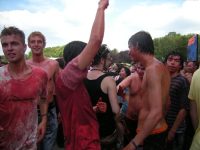 Danach fall ich dann aber wirklich ins Zelt. Ganz im Gegensatz zu Helena, von der dieses Bildchen stammt, auf dem es irgendwie schon wieder hell ist. Leute mit GWAR-Farbe und ein Typ mit geschätzten 40 Festivalbändchen am Arm. Cool. Achja, und Helena erzählt am nächsten Tag, dass Lord Bishop Rocks noch ein zweites Set gegeben haben - puh...gute Nacht!