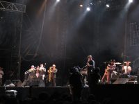 Vor der Bühne ist relativ wenig los, gefeiert wird aber ordentlich. So singt das Publikum fleißig die Refrains mit und klatscht artig im Takt. Zwar sind vor der Weltmusikbühne immer traditionell viele pseudoalternative Gute-Welt-Menschen, aber das soll mich nicht weiter stören, solange alle gut gelaunt ist will ich da keinem reinreden.