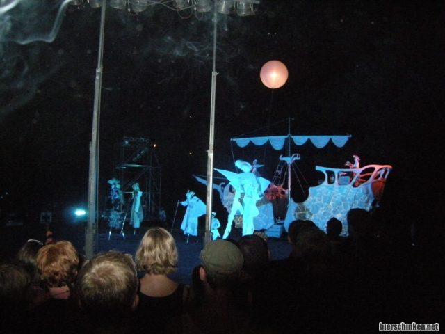 Wäre ich doch bloß bei den anderen geblieben, die konnten zumindest das hier sehen. Ein Knochenschiff, das jeden Abend auslief, ich jedoch immer verpasste. Inklusive komischer Gestalten und Schneemaschine. Keine Ahnung was es genau damit auf sich hatte, das Foto is von Helena. Hähä.