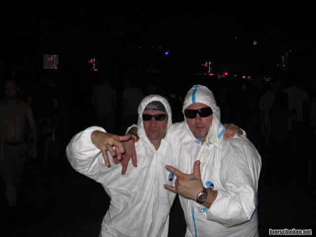 Man kann aber auch einfach Schutzanzüge tragen. Auch wenn uns diese freundlichen Herrschaften nicht sagen konnten, welchen Sinn und Zweck sie damit verfolgen.