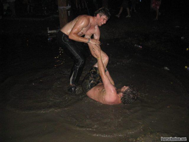 Noch ne weitere Stunde später - der Regen kommt jetzt von unten...und irgendwann machen wir uns auf den Rückweg. Treffen aufm Weg aber zufällig Sander, kehren noch in einer Bar ein, die gerade abgebaut wird - und der Wirt stellt uns seine restlichen Weinflaschen hin. Hier, bedient euch! Geil, lassen wir uns nicht zweimal sagen.