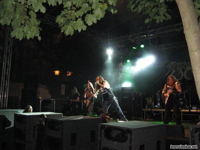 Knüppeldresche ausm Amiland. Black-Death-Thrash-Metal, mir bisher nicht bekannt. Die Banger vor der Bühne bekommen aber ordentlich zu tun und ich bekomme leichte Wacken-Revival-Gefühle. Die Band ist wohl noch relativ neu, hat Bühne und Publikum aber gut im Griff und beweist wieder mal, dass eine "schwarze Bühne" bei so nem Festival ganz und gar nicht fehl am Platze ist