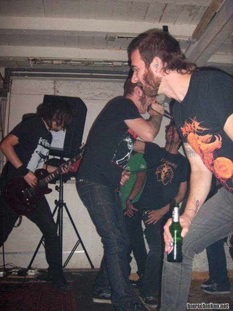Die Schweden spielen Grindcore der wahnsinnigen Sorte. Schnell, laut und rastlos. Was in aufgenommener Form in meinen Ohren ein wenig statisch klang, entwickelt live eine höllische Dynamik.