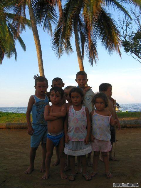 Zurück bei unserem Camp an der Ologa-Lagune bekommen wir Besuch, der uns alle Süßigkeiten abverlangt...dafür werden wir zu einer Partie Kokosnussball eingeladen.