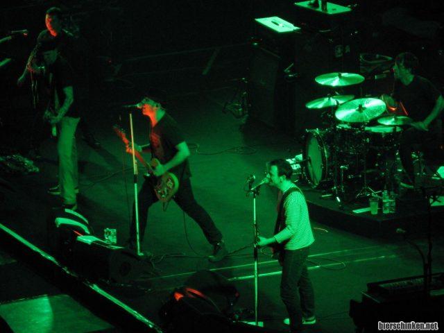 Jaha. Was noch. Achja, "Shiny Shoes" wird gespielt, was mich sehr erfreut - aber haut mich absolut nicht um heute. Scheiße ey. Keine Ahnung obs am Sound liegt oder daran, dass ich nicht mitten zwischen mitgrölenden Enthusiasten stehe, aber das Lied zündet einfach nicht. Hm. Und auch das darauf folgende "Panic" kickt nicht. Ist jetzt schon der Punkt angelangt, an dem das Konzert keinen Spaß mehr macht?
