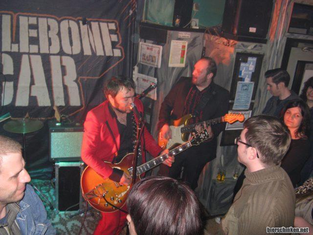 Man verzeihe mir also, wenn ich mich zum Fotos machen nicht allzu weit nach vorne drängeln wollte. Ist mir ja so schon unangenehm genug, mit meiner Körpergröße überhaupt noch auf Konzerte zu gehen. Nunja. Zurück zum Thema. Knucklebone Oscar, die verrückten Finnen mit dem Hang zu Jägermeister und ausufernden Blues-Soli, spielen schließlich noch.